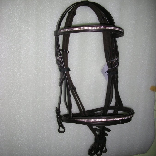GSI LEATHER SNAFFEL BRIDLE BROW-BAND AND NOSE BAND CRYSTAL ATTACHED