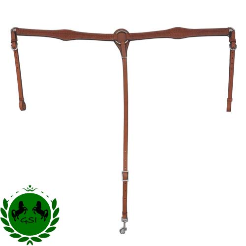 This is a gorgeous breast collar constructed of High quality thick 100% bridle leather, carefully hand-made with all the required precision to give the most unique look on an arena or a trail. The edges are all hand-dyed and the hardware used is solid Stainless Steel with excellent sparkling finish. They are ideal for a standard size horse and have some room for adjustments.